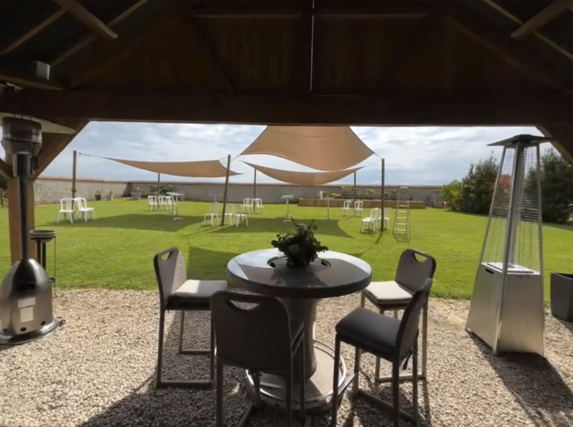 Préau de 90 m² pour les cocktails (et pour sauver la mise si la pluie s’invite),