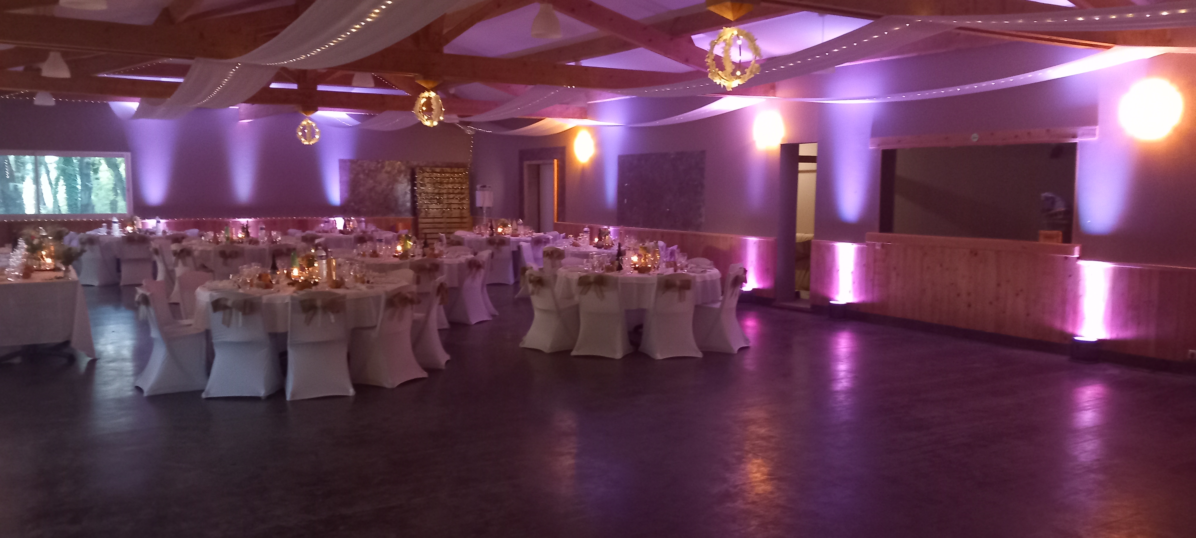 Je peux vous proposer plusieurs options comme la sonorisation de votre cocktail ainsi que la cérémonie laïque, un vidéo avec l'écran et la décoration lumineuse de la salle .